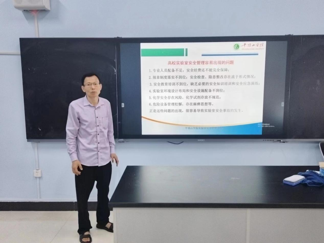 讲座中认真学习贯彻习近平总书记关于安全生产重要论述,树牢“人民至上、生命至上”理念,王小宁副院长在讲座中对河南省高校开展2023年“实验室安全生产月”活动通知进行了详细解读,在讲座中不仅学习了实验室的安全责任体系,还重点学习了用电安全及消防安全的相关知识。师生在实验室安仪器设备使用和全用电及方面进行了交流。