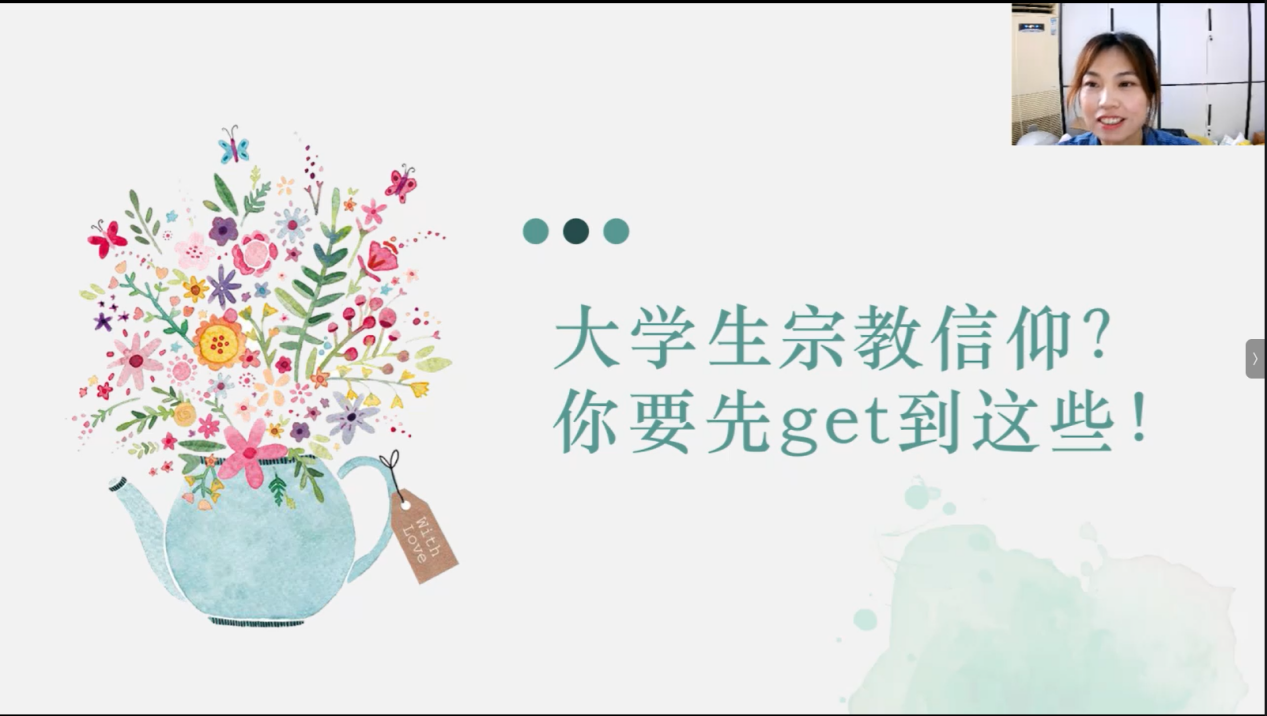 青少年是国家的未来,按照教育与宗教相分离原则和有关法律要求,学校有义务保护广大青少年的权利,为青少年提供良好的学习和成长环境;引导他们树立辩证唯物主义和历史唯物主义的科学世界观(包括科学无神论的世界观),增强自觉抵制宗教和有神论思想侵蚀的能力,成为有理想、有道德、有文化、有纪律的社会主义新人。本次宗教知识线上讲座,使同学们加深了对宗教知识的理解,同学们纷纷表示定会以科学的态度、科学的精神正确对待宗教!
