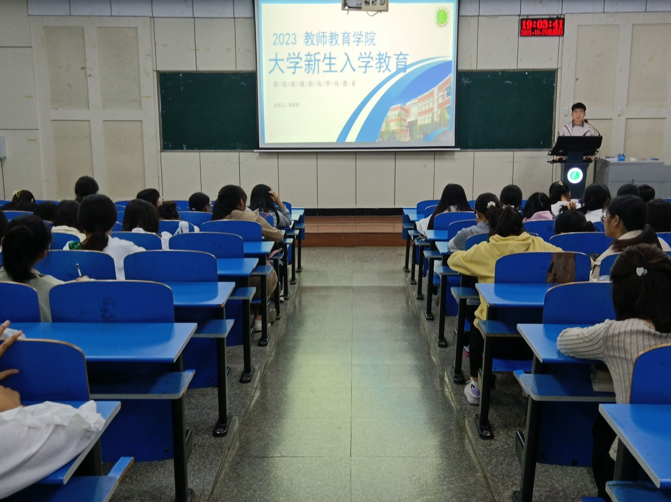 为进一步做好学院2023级新生的教育与管理工作,加强新生班级学风建设,增进学生规矩意识,帮助学生系好“人生第一粒扣子”,10月29日晚7时,1946伟德国际源自英国始于辅导员余昕阳在2206教室为新生作《严守平院规矩,争做优秀学生》专题讲座,23级普本新生及部分专升本学生参加。